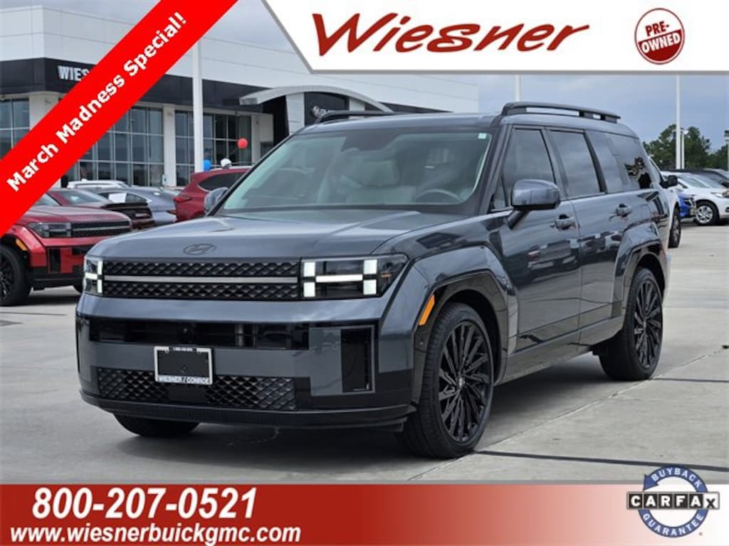 Certified. Ecotronic Gray 2025 Hyundai Santa Fe Calligraphy FWD Shiftronic 2.5L I4 Gray Leather, 12 Speakers, 4-Wheel Disc Brakes, ABS brakes, Air Conditioning, AM/FM radio: SiriusXM, Apple CarPlay & Android Auto, Auto High-beam Headlights, Auto-dimming Rear-View mirror, Automatic temperature control, Brake assist, Delay-off headlights, Dual front impact airbags, Dual front side impact airbags, Electronic Stability Control, Emergency communication system, Exterior Parking Camera Rear, First Aid Kit, Four wheel independent suspension, Front Bucket Seats, Front Center Armrest, Front dual zone A/C, Fully automatic headlights, Heads-Up Display, Heated & Ventilated Front Bucket Seats, Heated door mirrors, Heated front seats, Heated rear seats, Low tire pressure warning, Memory seat, Navigation System, Occupant sensing airbag, Panic alarm, Power door mirrors, Power driver seat, Power Liftgate, Power moonroof, Power passenger seat, Power steering, Power windows, Premium Nappa Leather Seat Trim, Radio: AM/FM/HD Bose Premium Audio System, Rain sensing wipers, Rear window defroster, Rear window wiper, Remote keyless entry, Security system, Speed control, Speed-sensing steering, Split folding rear seat, Steering wheel mounted audio controls, Traction control, Turn signal indicator mirrors, Variably intermittent wipers, Ventilated front seats, Wheels: 21 x 8.5J Unique Dark Finish Alloy.