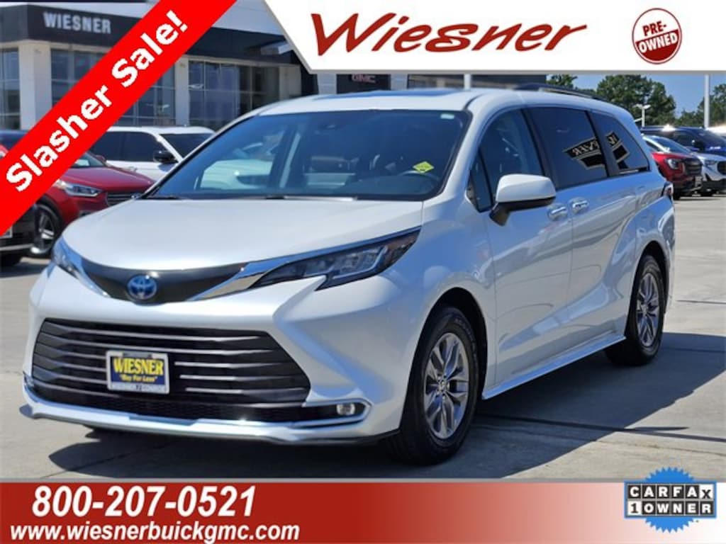 CARFAX One-Owner. Clean CARFAX. Pear 2022 Toyota Sienna XLE FWD CVT 2.5L I4 17 Alloy Wheels, 3rd row seats: split-bench, 4-Wheel Disc Brakes, 8 Speakers, ABS brakes, Air Conditioning, AM/FM radio: SiriusXM, Apple CarPlay/Android Auto, Auto High-beam Headlights, Auto-dimming door mirrors, Auto-dimming Rear-View mirror, Automatic temperature control, Axle Ratio: TBA, Brake assist, Delay-off headlights, Driver's Seat Mounted Armrest, Dual front impact airbags, Dual front side impact airbags, Electronic Stability Control, Emergency communication system: Safety Connect with 3-year trial, Exterior Parking Camera Rear, Four wheel independent suspension, Front Bucket Seats, Front dual zone A/C, Front fog lights, Front Heated Bucket Seats, Fully automatic headlights, Heated front seats, Lane Departure Warning System, Leather Shift Knob, Leather steering wheel, Low tire pressure warning, Occupant sensing airbag, Outside temperature display, Panic alarm, Power driver seat, Power Liftgate, Power moonroof, Power passenger seat, Power steering, Power windows, Radio data system, Radio: Audio Plus, Radio: Premium JBL Audio w/Navigation, Rear air conditioning, Rear dual zone A/C, Rear window defroster, Rear window wiper, Reclining 3rd row seat, Remote keyless entry, SofTex Seat Trim, Speed control, Speed-sensing steering, Split folding rear seat, Steering wheel mounted audio controls, Traction control, Variably intermittent wipers.